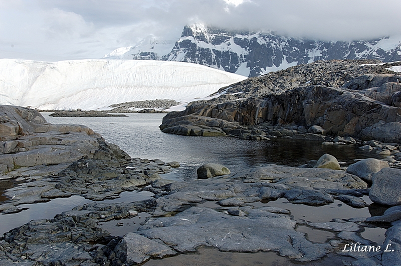 Nous débarquons en fin d’après midi à Port Lockroy. Il fait encore relativement beau. Sur l’île il y a des ossements de baleines, des manchots. De nouveau un très bel environnement.
