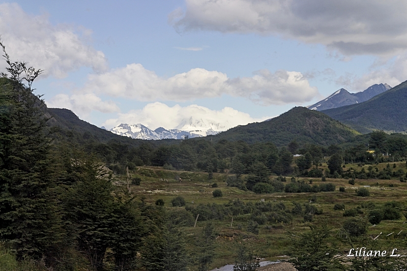 Arrivés à Ushuaia nous récupérons nos bagages et nous dirigeons vers la sortie. Des cars attendent les passagers pour les emmener soit en ville soit au Parc National de Lapataia. Nous avons réservé l’excursion, nous nous dirigeons donc vers le car allant au parc national. Presque tout le groupe de Français est là . La route qui va à Lapataia est jolie.