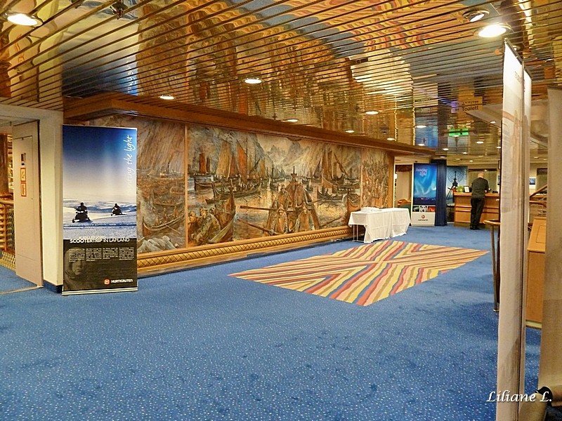 Vers 18 heures nous montons à bord du MS Richard With, nos bagages sont déjà devant notre cabine Nous sommes au pont 5. Ce qui est bien c’est que j’ai tout de suite accès au pont extérieur.