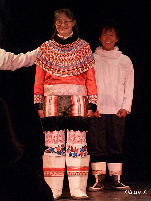 Nous nous dépêchons d’aller dans notre cabine nous changer car nous avons rendez-vous au théâtre, des villageois viennent nous montrer quelques danses et chanter, un inuit jouera également de la guitare, ils sont très applaudis.