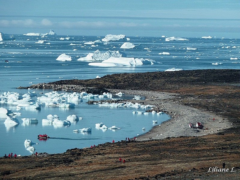 A 8 h 30 mn notre groupe part pour une belle balade en zodiac parmi un cimetière d’icebergs, fabuleux !