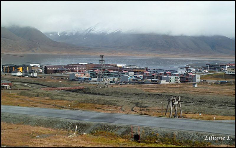 Lorsque nous nous posons à Longyearbyen 78°de latitude nord, il fait 3°, les montagnes sont enneigées et il ne fait pas très beau. Nous sommes bien au Spitzberg!