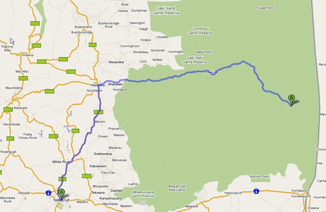 Nelspruit – Kruger National Park (Paul Kruger Porte) Lower Sabie 155 km