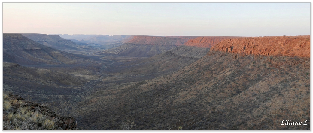 Comme à mon habitude réveil matinal pour voir le lever de soleil et admirer la vallée entourée de montagnes tabulaires.