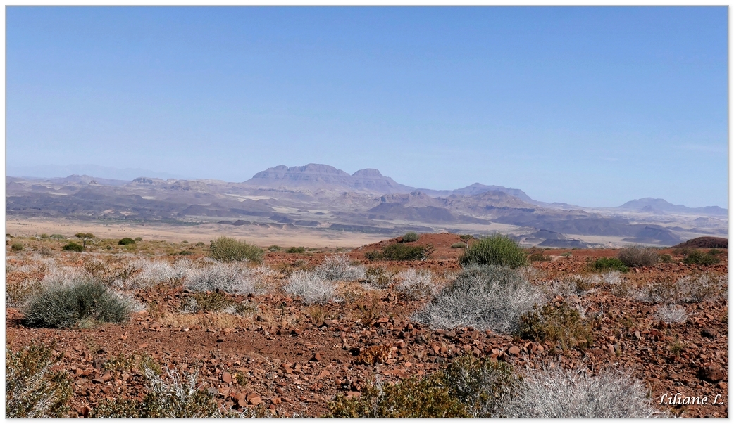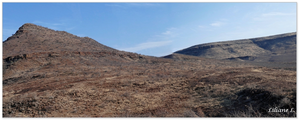 Après un bon petit déjeuner nous prenons la route pour la concession de Palmwag qui est située à une vingtaine de kilomètres.
