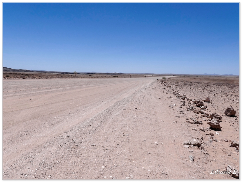 Les paysages sont jolis et changent sans arrêts, après la plaine nous traversons le Kuiseb Canyon. Nous nous arrêtons, Blandine et Rédé nous donne des explications sur cette formation géologique dont les plissements datent de 300 millions d’années, lorsque les deux cratons du Congo et du Kalahari ont refermé la mer Damara.