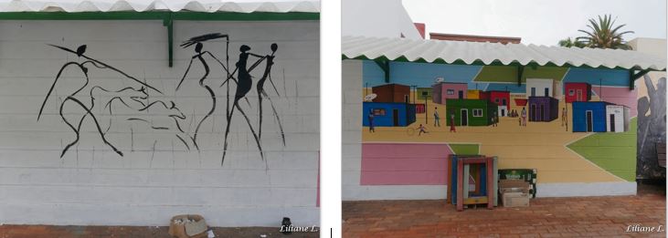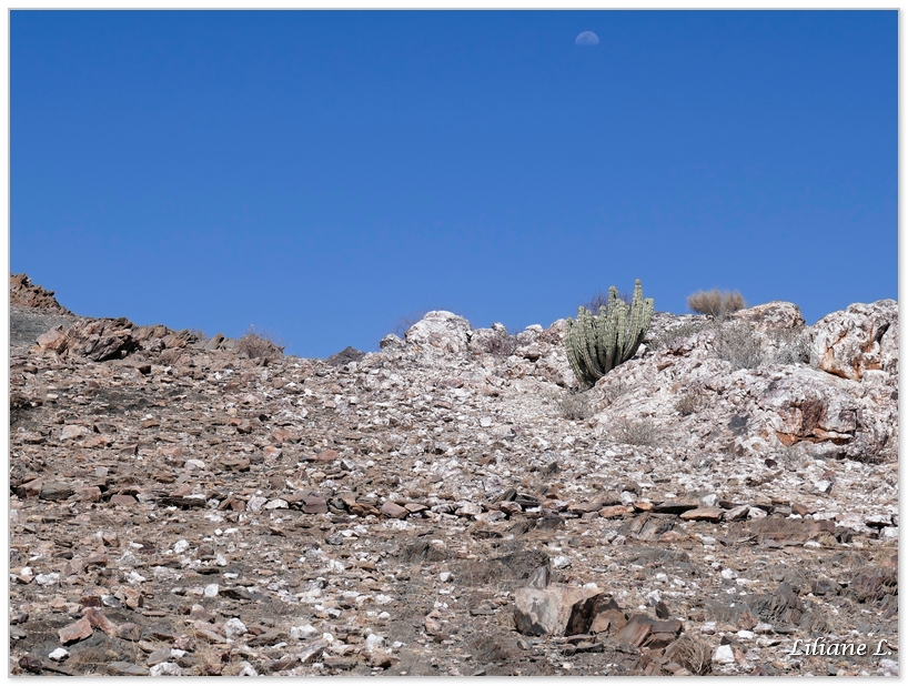 Puis nous allons à notre lieu de rendez-vous. Personne n’est encore arrivé, j’en profite pour entrer jeter un œil dans la boutique Art et Café « Die Muschel, il y a un beau rayon librairie. En rentrant en France je voulais commander le livre « Géologie, Faune et Flore de Namibie de Maxime Lelièvre » que m’avait prêté Caroline et là, il est en rayon et même en Français, évidement je l’achète car je trouve ce livre très bien fait pour identifier et comprendre l’environnement namibien.