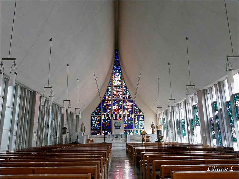 Michel reste à l’hôtel pour se reposer et s’occuper des photos, il sortira un peu plus tard dans la journée. Moi je pars flâner nez au vent sans but précis. Je commence par entrer dans l’église qui est juste à côté de l’hôtel, l’intérieur est sobre, il y a de beaux vitraux.