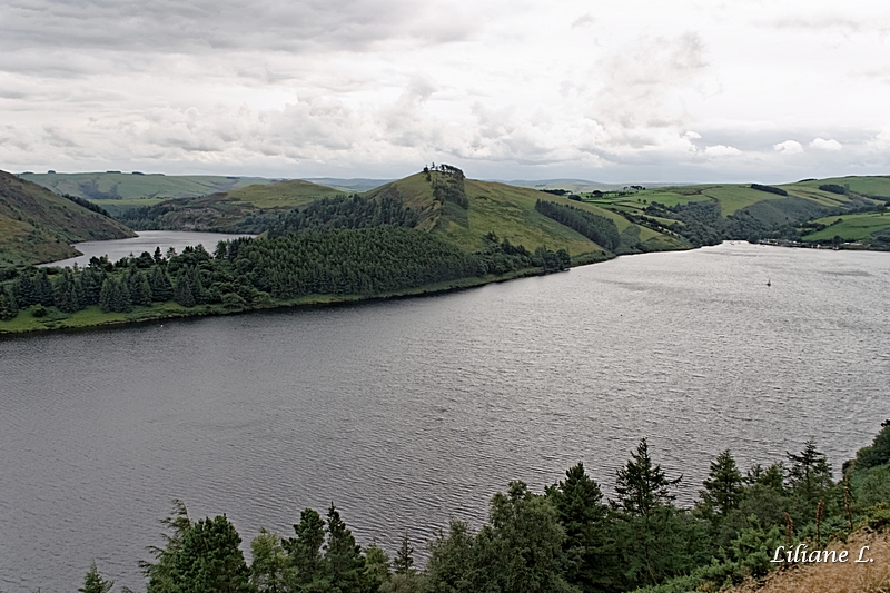 Nous nous arrêtons à Llyn Clywedog où nous avons un beau panorama, dommage il y a beaucoup de nuages, de vent et surtout il ne fait pas chaud.