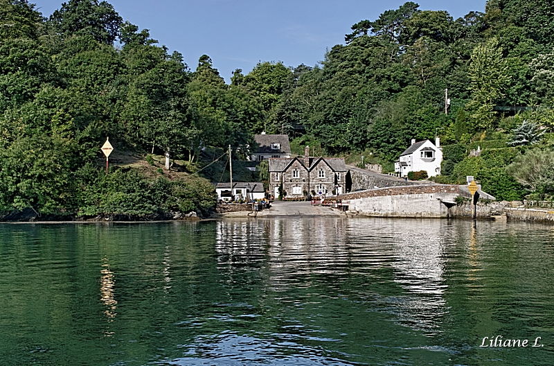 Après un solide petit déjeuner nous prenons la route A39 et B3289 à King Harry, la route s’arrête, nous devons prendre un petit ferry pour traverser l’estuaire et là, oh surprise, le prix de la traversée qui dure 5 minutes nous coûte 5£ !
