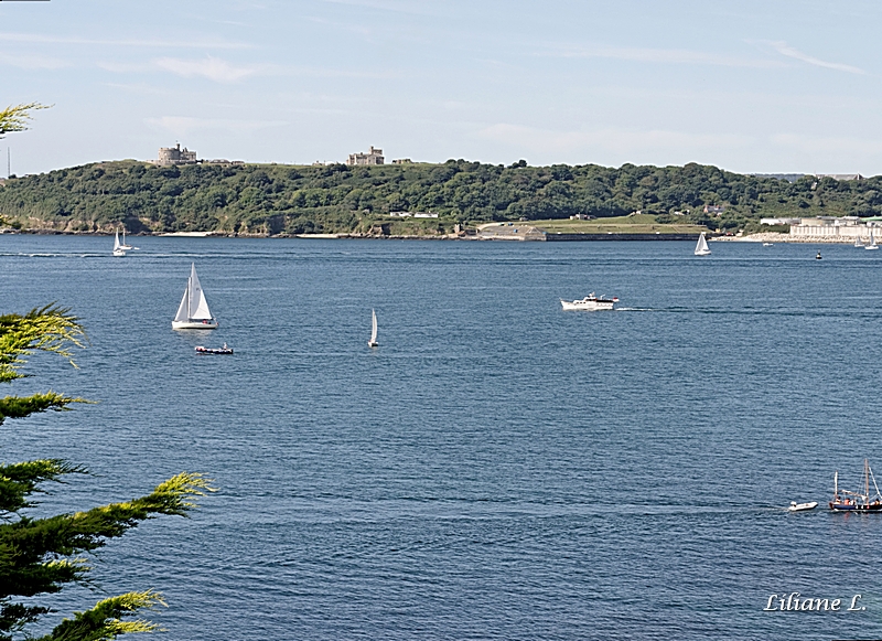 puis nous rejoignons la B3289, jolie route qui longe le Carrick Roads. Nous nous arrêtons sur la route juste en face de Falmouth où nous apercevons le château. C’est très joli.
