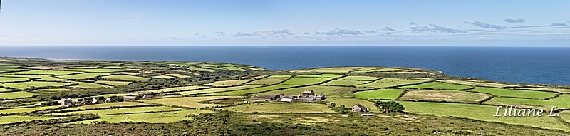 Nous quittons Saint Ives et prenons la B3306, nous nous arrêtons à Little Trevalgan, nous prenons le sentier bordée de bruyères en fleurs et de genêts piquants qui va à une butte d’où l’on à une très belle vue à 360° sur les collines et bocages.