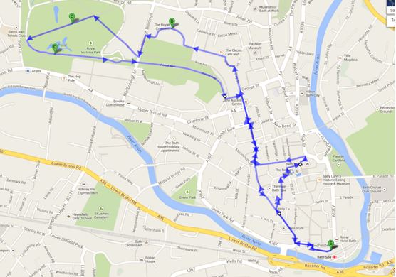 Nous voilà partis pour une balade dans Bath et le Victoria Park