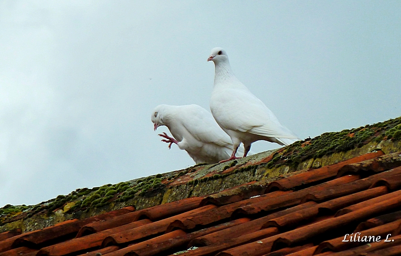 Avant d’entrer, je regarde un petit moment le manège amusant de ces colombes.