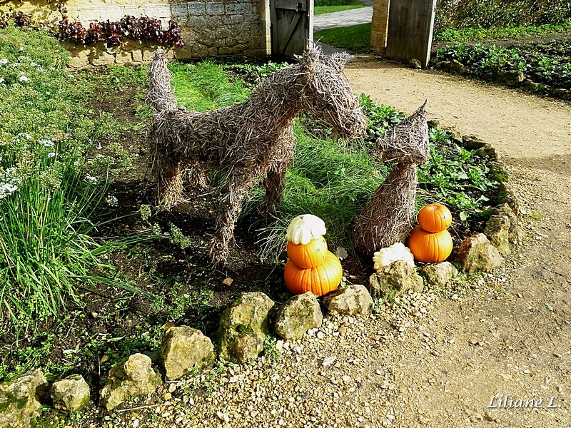 Puis nous allons visiter cette propriété qui a été sauvée de la ruine et restaurée par la famille Lyle dans les années 1920 .Nous commençons par les jardins notamment le potager, nous approchons d ‘ Halloween, on découvre donc ces décorations.