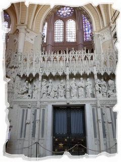 puis nous arrivons devant la cathédrale Notre-Dame. C’est le monument emblématique de Chartres. Elle est considérée comme la cathédrale gothique la plus représentative, la plus complète ainsi que la mieux conservée de par ses sculptures, vitraux et dallage pour la plupart d’origine, bien qu’elle soit construite avec les techniques de l’architecture romane montrant ainsi la continuité et non la rupture entre ces deux types d’architecture.