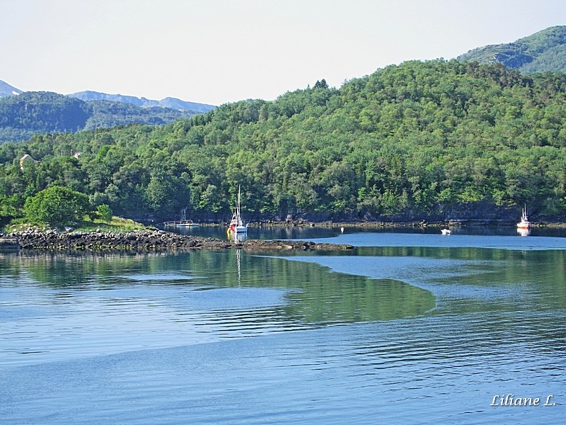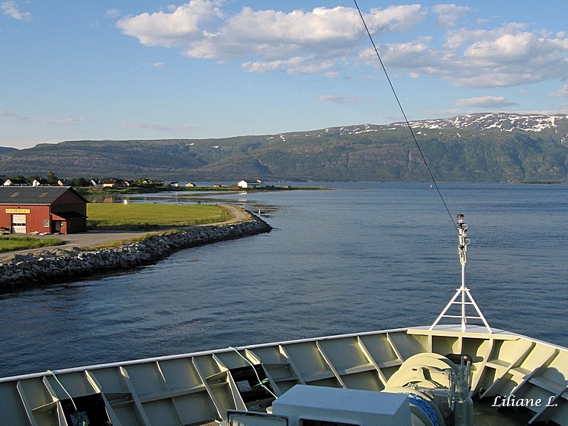à 7 h 13 mn et poursuivons notre naviguation en direction de Ornes. Peu avant, un catamaran vient chercher les excursionnistes qui vont au Glacier Starvisen. Je n’ai pas pris cette excursion, nous irons lorsque nous redescendrons en voiture des Iles Lofoten.