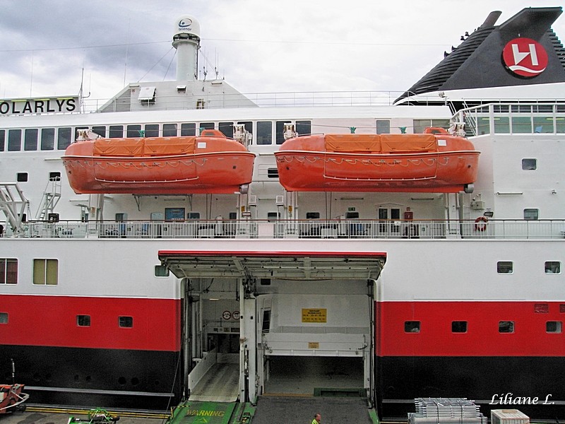 A notre retour nous nous présentons aux guichets mais ce n’est pas encore ouvert. Notre navire le MS Polarlys est à quai, nous passons un bon moment à observer le va et vient de l’embarquement des marchandises.