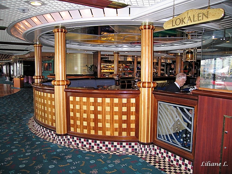 Nous explorons le navire afin de nous familiariser avec celui-ci. Le bateau est joliment décoré. On y trouve restaurant, cafétéria, bar, discothèque, bibliothèque, petite salle de jeux pour les enfants, salle internet, salon panoramique, etc..