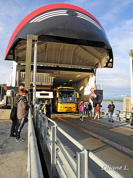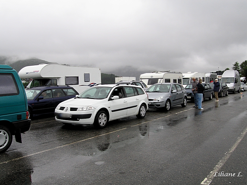En arrivant à Svolvaer le temps est toujours aussi bouché et pluvieux, nous décidons de nous arrêter là et de prendre le ferry qui va à Skutvik, sur le continent en espérant qu’il fasse meilleur. Il est 11 h 30 et le prochain ferry part à 14 30 , la traversée dure 2 h environ. En attendant l’heure du départ nous allons nous restaurer à la cafétaria du port.
