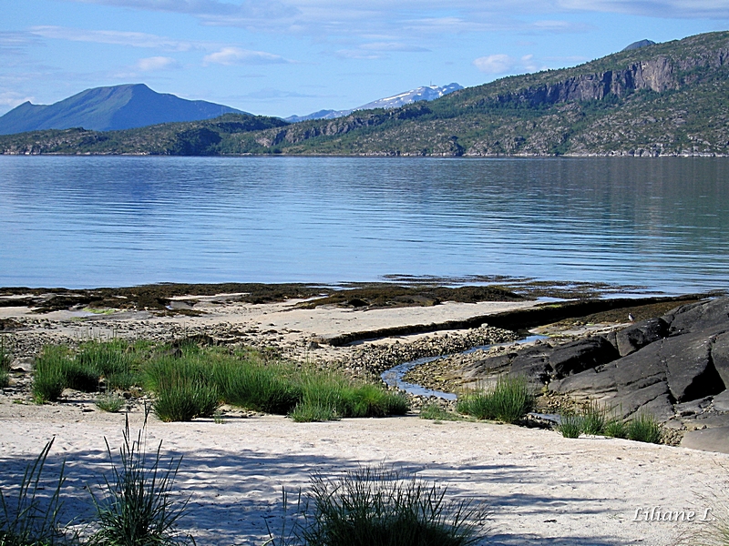 Nous rejoignons la E 6 à Ulsvag. Nous nous arrêtons à Drag faire quelques courses pour le pique-nique. Nous pique-niquons face au magnifique Sagfjorden dans un endroit prévu à cet effet.