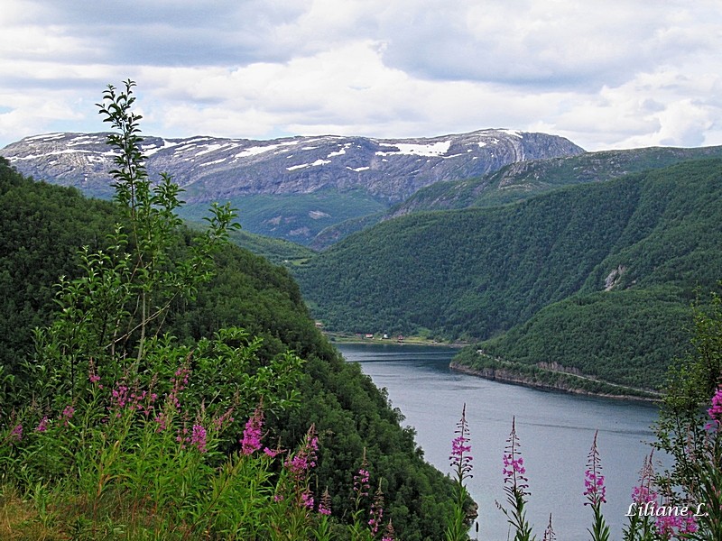 Nous prenons, la RV 81 belle route longeant le Sagfjorden et dans les prés il y a de jolies Ellebordes.