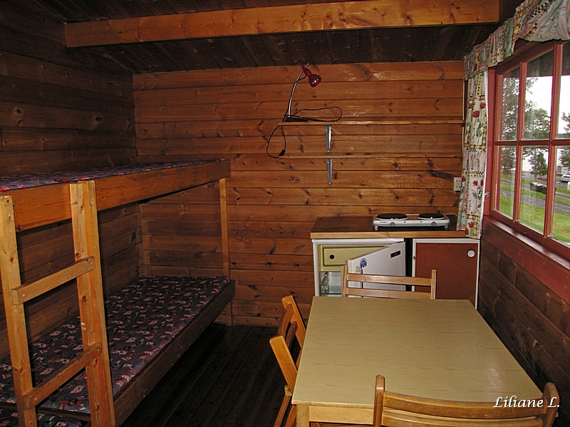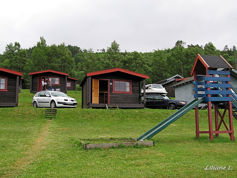 Vers 17 h 00 nous commençons à chercher un logement pour la nuit. Il n’y a pas beaucoup de villages dans ce coin. A la 1ère tentative tout était complet. Nous nous arrêtons à Dovregubbens Hall à Valasjo, Il y a un hôtel restaurant, avec quelques maisons en location dépendant de l’hôtel. On se renseigne sur les disponibilités et les prix. On réserve un chalet, le prix nous convient, pour nous 2 c’est trop grand, mais il n’y a rien d’autre. On a un séjour cuisine américaine salon avec cheminée, 2 chambres, salle de bain, c’est très bien.