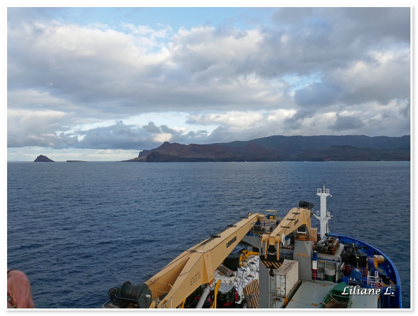 Vers 17 h 30 nous quittons Vaipaee, je suis sur le pont, avec le soleil qui commence à décliner la montagne est splendide.