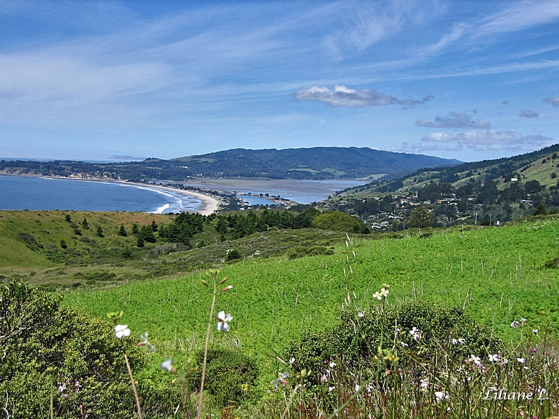 nous prenons quelques photos de Bolinas Bay, belles vues côté mer et montagne.