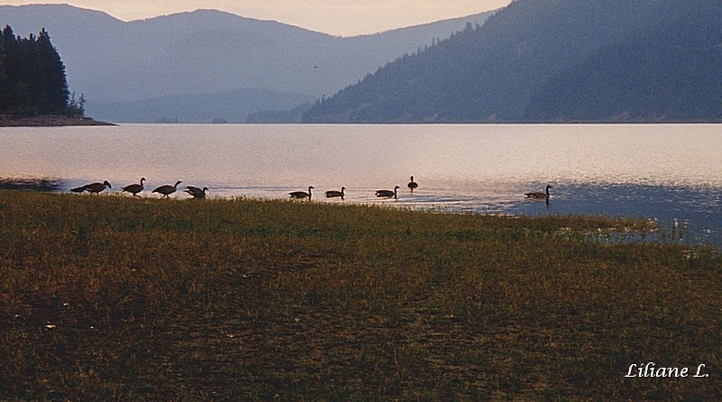 Nous sommes réveillés par une colonie d’oies sauvages qui sont au bord du lac, nous nous levons rapidement pour aller les voir.